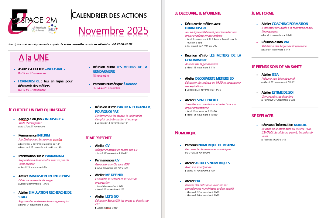 On retrouve aussi nos ateliers habituels pour l’emploi, l’orientation, la mobilité, etc